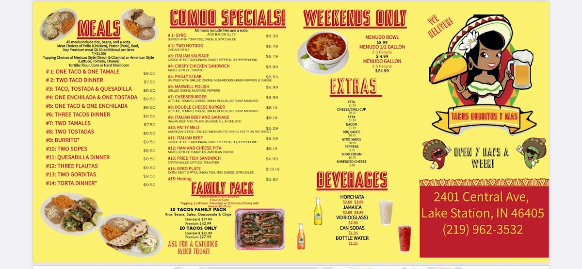 Served with Sour Cream, Beans, Tomato, Lettuce, Cheese, and Rice Inside